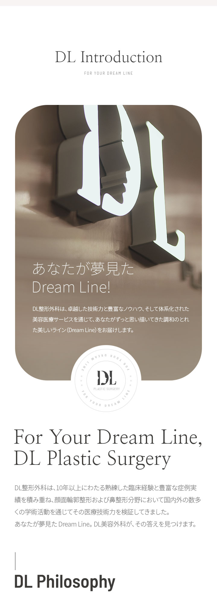 DL美容外科は、卓越した技術力と豊富なノウハウ、そして体系化された美容医療サービスを通じて、あなたがずっと思い描いてきた**調和のとれた美しいライン(Dream Line)**をお届けします。