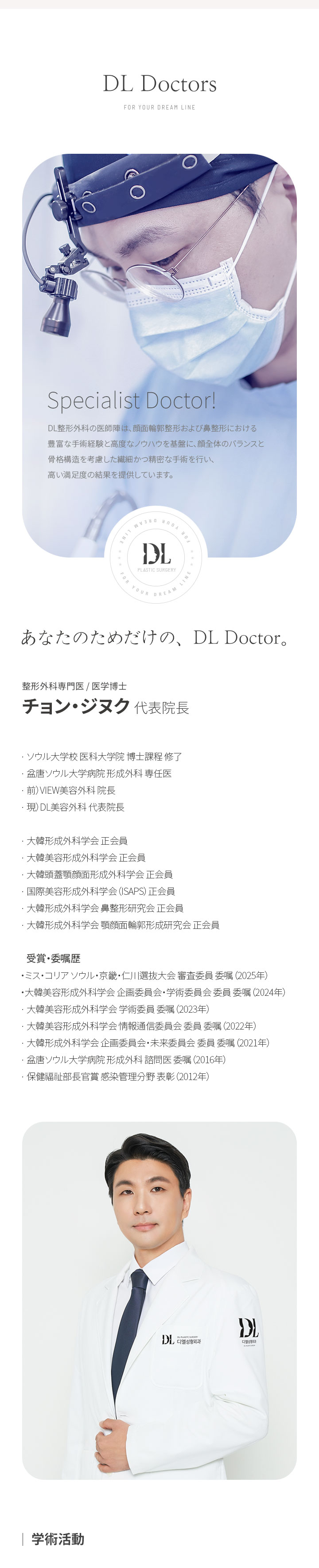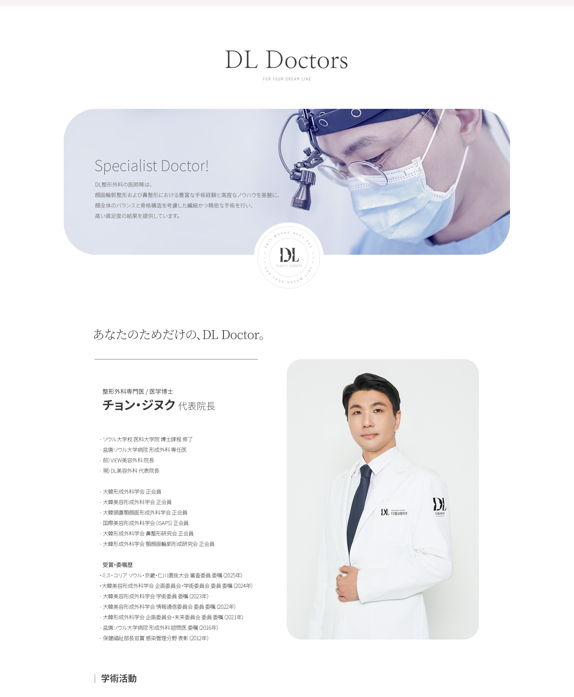 DL美容外科は、10年以上にわたる熟練した臨床経験と豊富な症例実績を積み重ね、顔面輪郭整形および鼻整形分野において国内外の数多くの学術活動を通じてその医療技術力を検証してきました。
