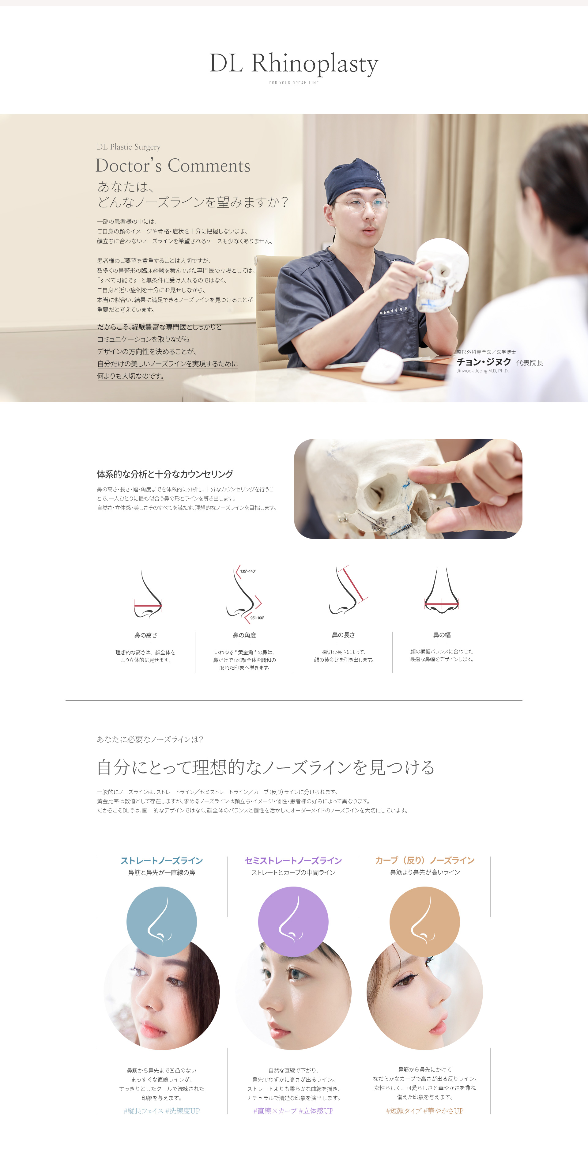 1.DL美容外科は、顔面輪郭整形・鼻整形に特化した医療システムと10年以上の熟練した臨床経験・ノウハウを備えた専門クリニックです。